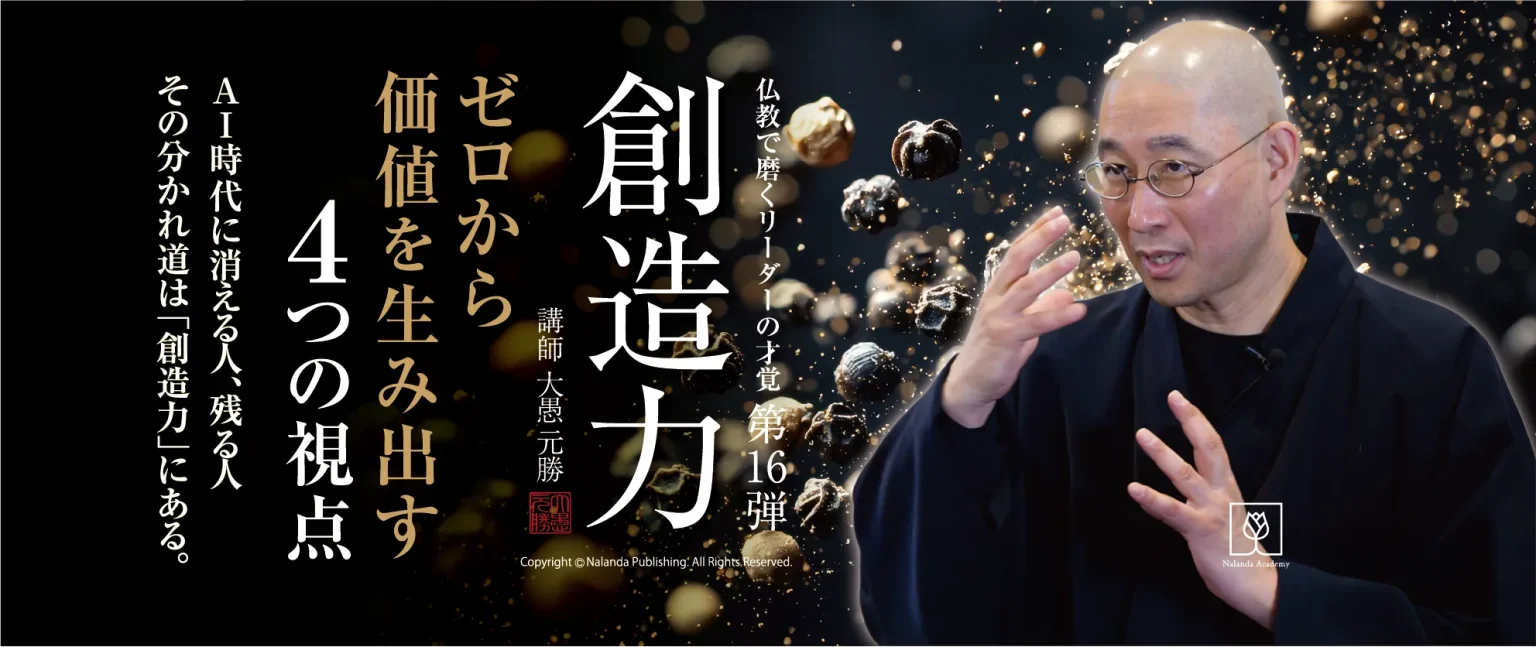 シリーズ第16弾の「創造力」は、AI時代を生き抜くために欠かせない「新しい価値を生み出す力」を、仏教の歴史に息づく多彩な事例とともにひも解き、日常や仕事の中で創造性を発揮するための具体的なヒントを紹介しています。
